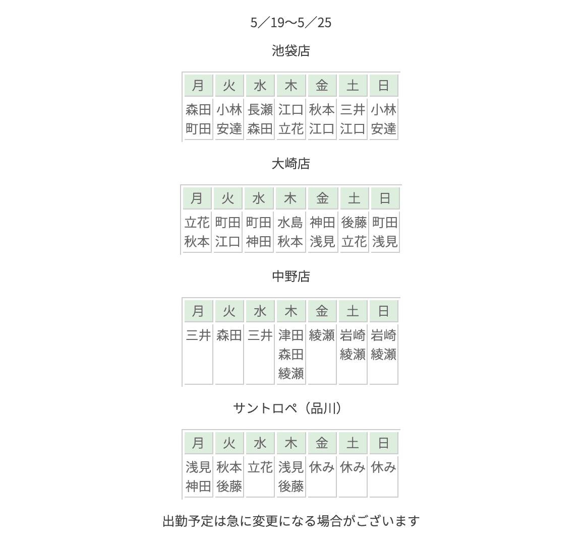 当然スケジュールも至ってシンプル。